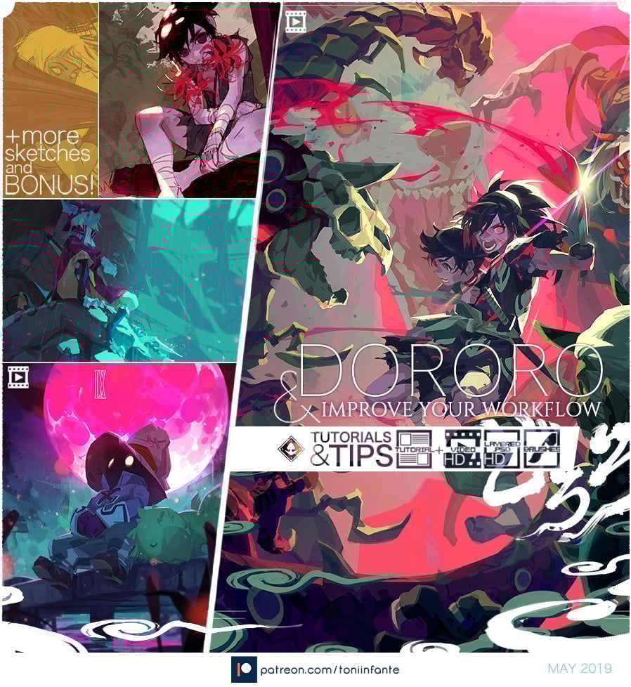 - Improve your Workflow: Tips and insight on my process that hopefully can help you to improve your own workflow. Here I talk about my work space, my source of inspirations and resources, my way to arrange references, and more.