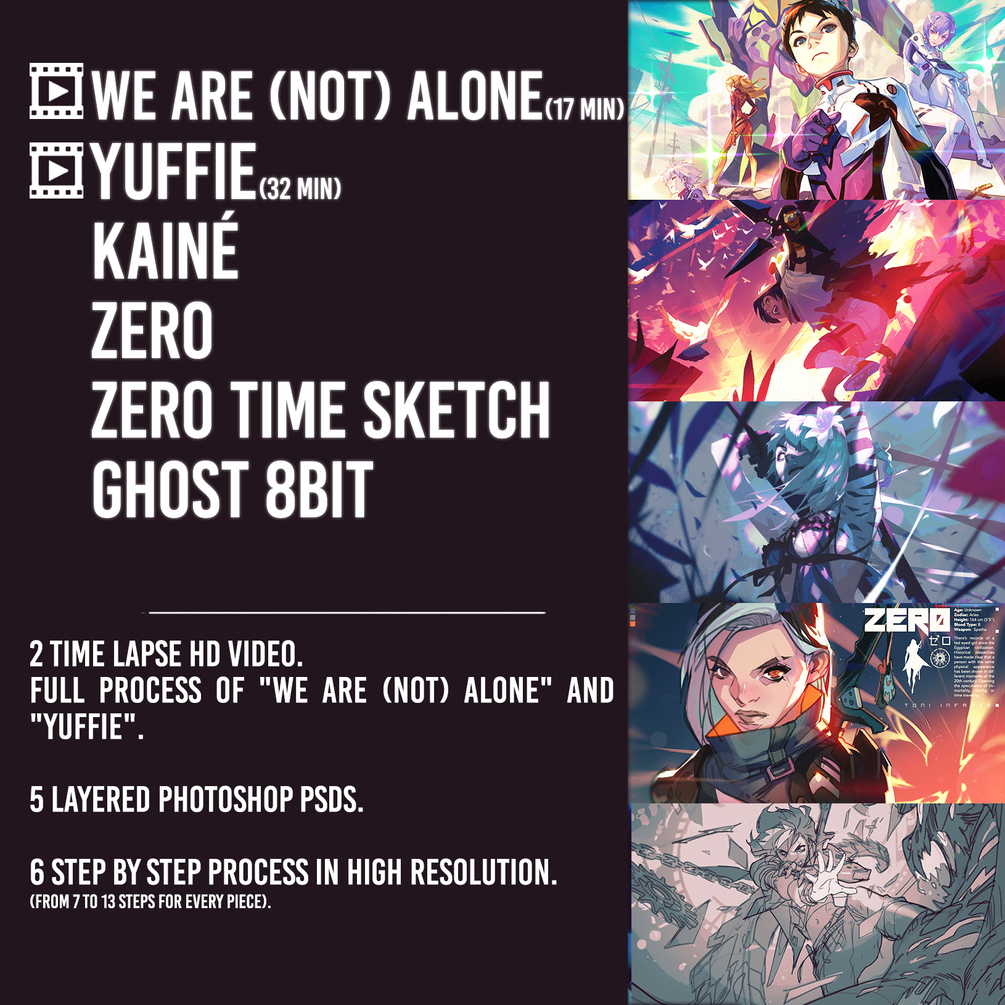 - 2 Time lapse HD videos: With the full process of We Are (Not) Alone (17min) and Yuffie (32 min approx).